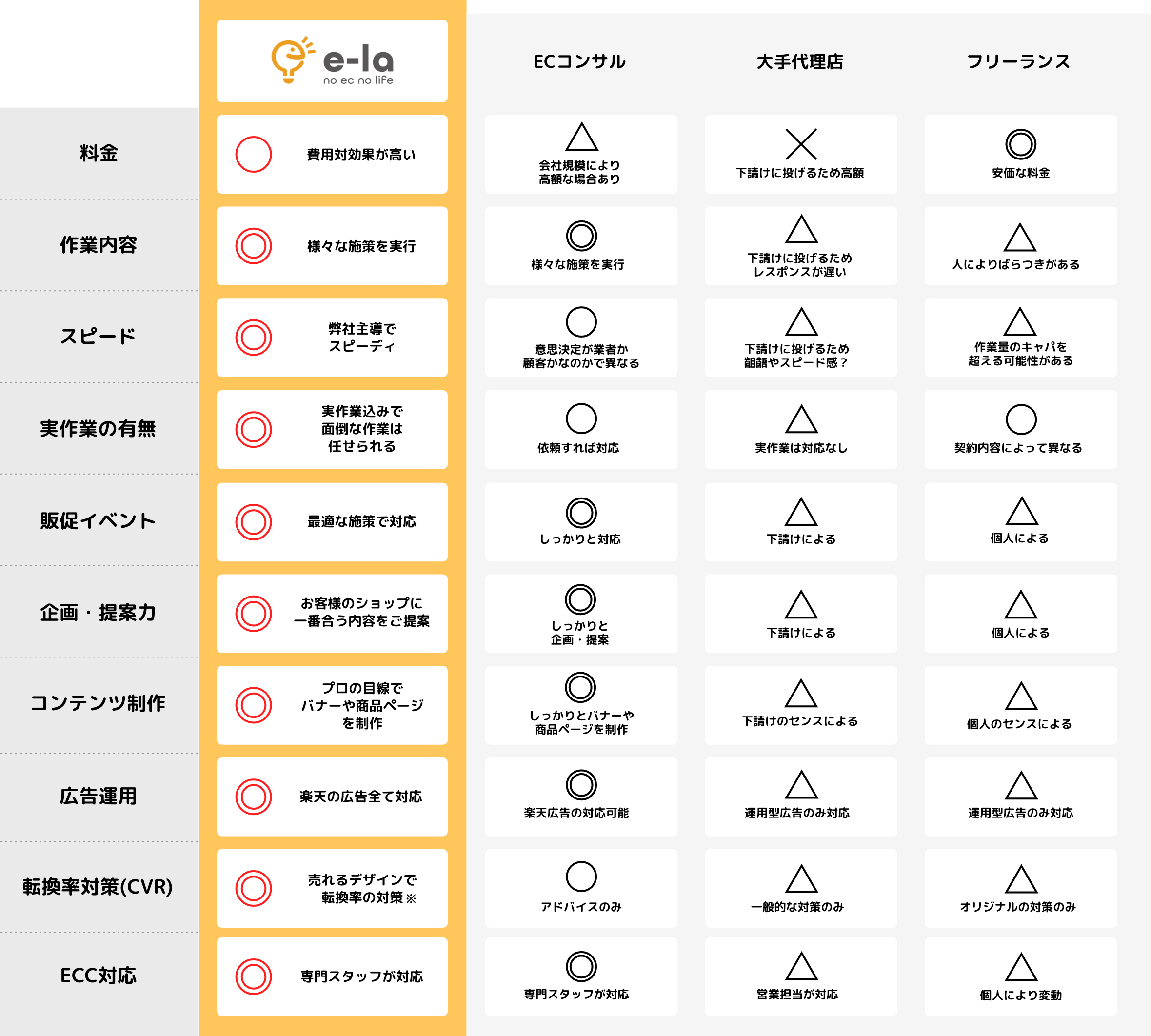 当社の代表はEC月商1.5億円の実績があります。その視点やノウハウを活かし、売れる商品ページを作るための支援をさせていただきます。